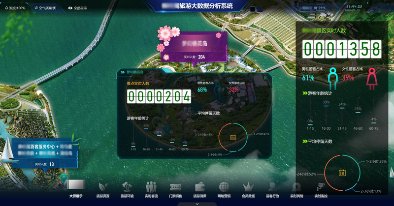 景區(qū)旅游大數(shù)據(jù)分析展示系統(tǒng)借助云計算、GIS、移動通信、人工智能等多個領(lǐng)域的技術(shù),融合了視頻處理、圖像處理、模式識別、運動軌跡判別等統(tǒng)計分析算法,通過對接景區(qū)門禁票務數(shù)據(jù)、視頻監(jiān)控數(shù)據(jù)、電子商務數(shù)據(jù),分析景區(qū)客流量信息、車輛識別數(shù)據(jù)、WIFI探針數(shù)據(jù)、客源地信息、熱力圖信息,對游客的年齡層次、來源省份和地市構(gòu)成比例、在景區(qū)的停留時間、各景點客流量等信息進行周期性統(tǒng)計和挖掘,并與歷史數(shù)據(jù)進行對比分析,為景區(qū)旅游業(yè)的科學管理、游客的旅游體驗和面向客源地的精準營銷提供數(shù)據(jù)支撐。
