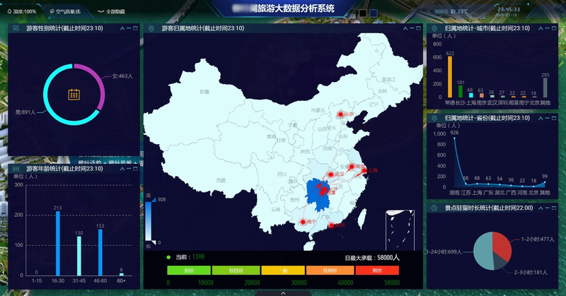 從歸屬地的維度對客流數(shù)據(jù)進行分析統(tǒng)計,對實時客源的實時人數(shù)統(tǒng)計,數(shù)據(jù)以歸屬地來進行分配,對客源的人數(shù)分布的一個直觀感受。