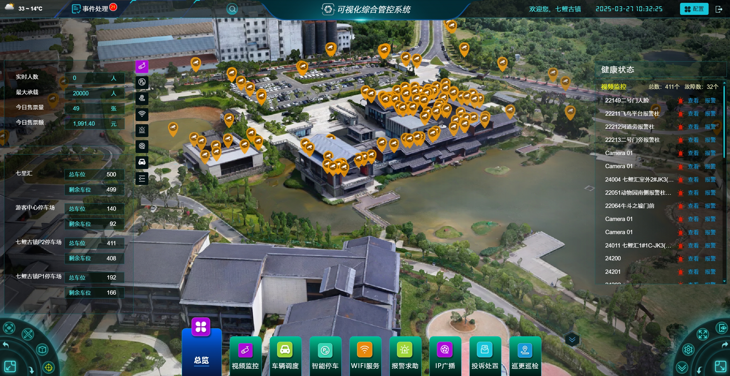 面向景區(qū)管理:景區(qū)地理信息平臺(景區(qū)地圖采用傾斜攝影三維建模),大數(shù)據(jù)可視化(具備景區(qū)展示、客流與車流態(tài)勢、 消費統(tǒng)計、安防、票務(wù)統(tǒng)計、電商統(tǒng)計、投訴統(tǒng)計、會員統(tǒng)計、輿情監(jiān)測等展示功能),可視化綜合指揮平臺(可視化指揮調(diào)度系統(tǒng)(視頻指揮、車輛指揮、WIFI服務(wù)、報警求助、IP廣播調(diào)度、應(yīng)急指揮通訊、投訴處置、安防指揮等模塊)、應(yīng)急指揮管理系統(tǒng)(融合調(diào)度、GIS指揮、應(yīng)急預(yù)案、應(yīng)急事件、應(yīng)急值守、通訊錄等管理功能))。