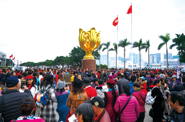 △ 2018年12月13日,經(jīng)過一個(gè)月的維修,位于香港金紫荊廣場(chǎng)的金紫荊雕塑重新亮相,吸引眾多內(nèi)地游客“打卡”拍照。張煒攝