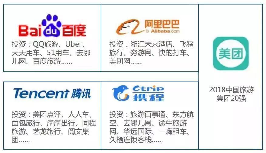 隨著互聯(lián)網(wǎng)的發(fā)展及消費升級,無論是百度、阿里巴巴、騰訊等互聯(lián)網(wǎng)企業(yè),還是攜程等旅游企業(yè),均有投資覆蓋不同行業(yè)領(lǐng)域,助力延長產(chǎn)業(yè)鏈。