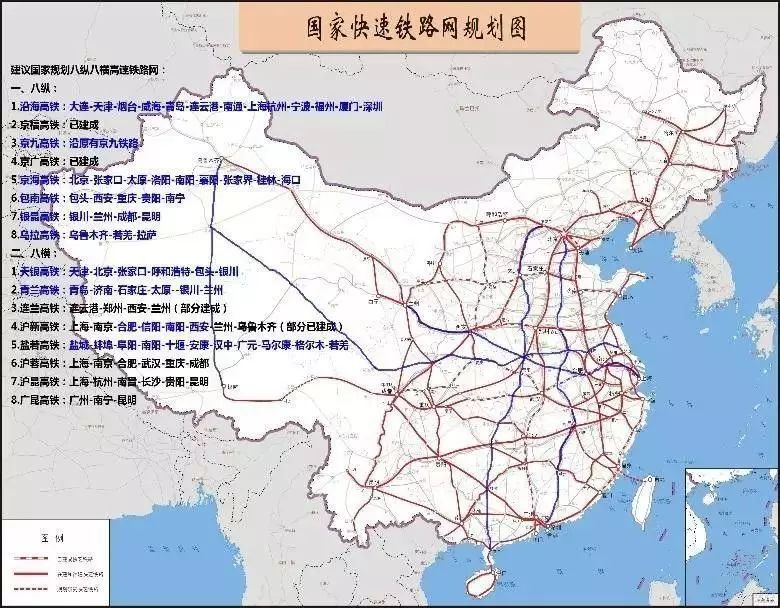 《中長期鐵路網(wǎng)規(guī)劃》中“八縱八橫”規(guī)劃圖