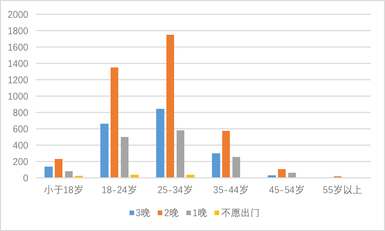 圖10 夜間旅游消費(fèi)和時(shí)長(zhǎng)(按年齡)