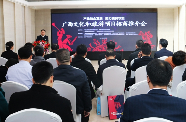 推介會上,自治區(qū)體育局、林業(yè)局、旅游發(fā)展集團(tuán)和文化產(chǎn)業(yè)集團(tuán)分別介紹了廣西體育旅游、森林旅游、文旅產(chǎn)業(yè)融合現(xiàn)狀,投資環(huán)境、產(chǎn)業(yè)優(yōu)惠政策及重點(diǎn)招商項目。賀州市、百色市、崇左市分別就當(dāng)?shù)靥厣幕吐糜萎a(chǎn)業(yè)招商項目進(jìn)行推介。