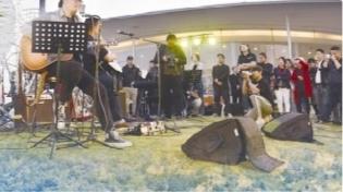 ■石老人沙灘如是書店旁,歌手用聲音唱響城市魅力。路泉 攝
