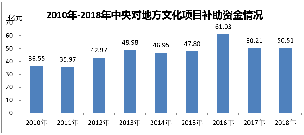 2018年,中央財(cái)政通過繼續(xù)實(shí)施“三館一站”免費(fèi)開放、非物質(zhì)文化遺產(chǎn)保護(hù)、公共數(shù)字文化建設(shè)等文化項(xiàng)目,共落實(shí)中央補(bǔ)助地方文化專項(xiàng)資金50.51億元,比上年增長(zhǎng)0.6%。