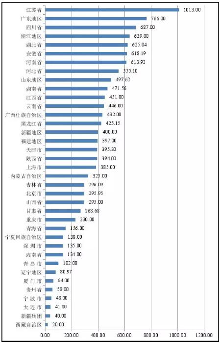 從發(fā)行地區(qū)和規(guī)???,截至4月末發(fā)行的新增地方政府債券完成2019年新增限額30,800億元的42.01%,完成提前下達(dá)部分2019年新增地方債務(wù)限額13,900億元的93.09%。從1-4月新增地方政府債券發(fā)行規(guī)模(分地區(qū))看,江蘇省、廣東省和四川省位居前三位。