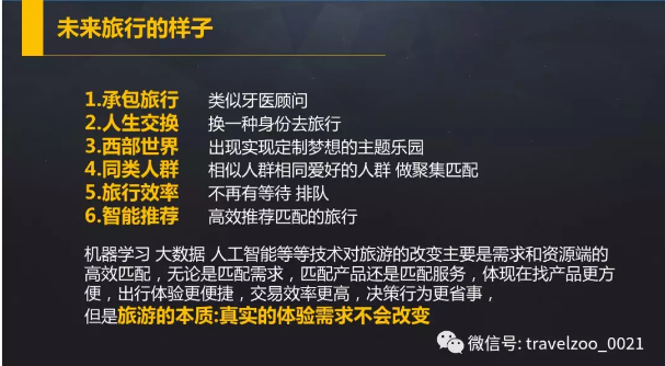 總結一下:無論未來技術多么強大,依然不會改變旅游的本質——也就是基于每個人的真實的體驗需求。