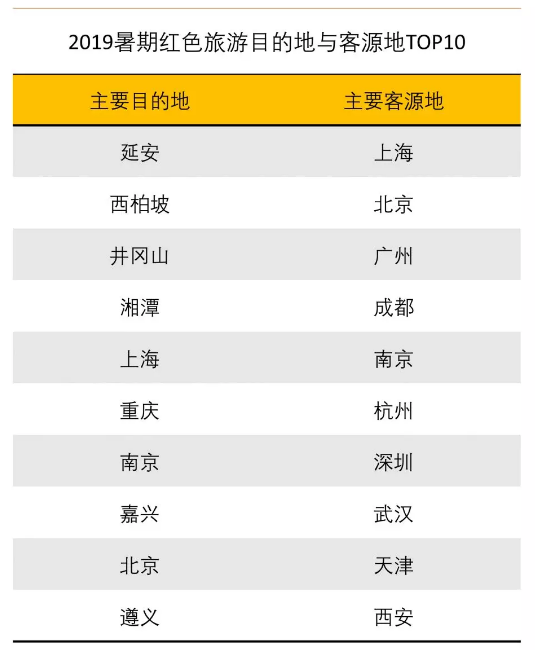 大型OTA的數(shù)據(jù)顯示,僅2019年暑假,預(yù)計(jì)即有超過1億人次選擇紅色旅游。主要目的地為延安、西柏坡、井岡山、湘潭、上海、重慶、南京、北京等地。主要客源地則為上海、北京、廣州、成都、南京、杭州、深圳、武漢、天津、西安等地。