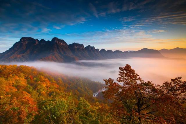 “紅葉天下美杜鵑千年艷,清清韓溪河相守在月潭”,美麗的光霧山如詩如畫,在這里“春賞杜鵑、夏納清涼、秋品紅葉、冬覽霧凇”,四季皆景。清晨從映水壩乘索道而上,站在海拔2300米的香爐山巔,放眼徐徐展開的紅葉畫卷,古樹盆景與奇峰、怪石、絕壁融為一體,日出、晚霞、云海猶為壯觀。夜幕降臨,行浸式夜游項(xiàng)目《夢境光霧山》和大型舞臺(tái)實(shí)景劇《巴山夜雨》等,應(yīng)用裸眼3D、霧氣成像、AR互動(dòng)等光影技術(shù),生動(dòng)講述巴人的起源、發(fā)展及精神文化,讓人流連忘返。