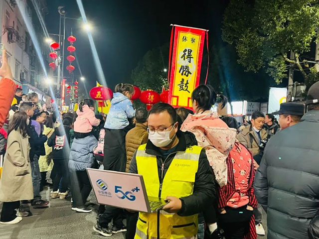 2月1日,“中國狀元縣”——休寧縣隆重開展“鼓迎新春龍騰狀元城”傳統(tǒng)民俗表演活動(dòng),華燈璀璨、張燈結(jié)彩、人頭攢動(dòng)、熱鬧非凡,游客和村民前來感受非遺傳統(tǒng)文化。為保障活動(dòng)期間通信暢通,安徽移動(dòng)休寧分公司組織志愿服務(wù)小分隊(duì),對狀元古城實(shí)現(xiàn)5G全覆蓋,提前對狀元街、狀元博物館等活動(dòng)周邊區(qū)域進(jìn)行多輪測試和設(shè)備巡檢,對4G/5G網(wǎng)絡(luò)進(jìn)行擴(kuò)容,進(jìn)行現(xiàn)場網(wǎng)絡(luò)保障。