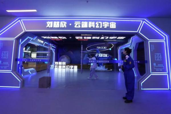 是10月1日對外開放的“劉慈欣·云端科幻宇宙”,位于渝中區(qū)“重慶云端之眼”。作為重慶首個沉浸式元宇宙體驗館,該項目將山城獨有立體風(fēng)貌與未來科幻文學(xué)完美交融,利用重慶魔幻立體的地理格局和賽博朋克的城市肌理,融合全息投影、VR虛擬現(xiàn)實、AR增強(qiáng)現(xiàn)實等多種交互數(shù)字藝術(shù),打造出了多維而浩渺的浸入式空間,讓人耳目一新,吸引了來自重慶市內(nèi)外的眾多游客打卡。