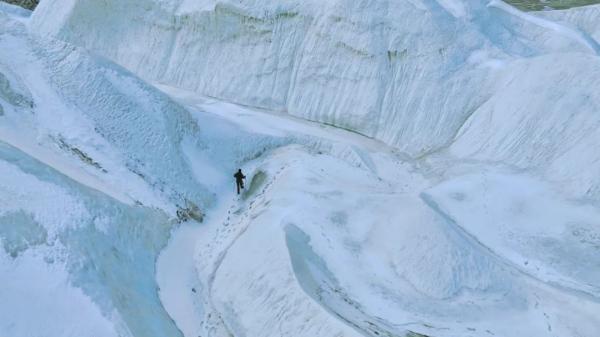 隨著海西蒙古族藏族自治州冬春季旅游系列活動拉開帷幕,地處柴達木盆地北緣、祁連山系吐爾根達坂山東端的敦德冰川成為眾多越野和攝影愛好者的詩與遠方。敦德冰川又稱敦德冰帽,是西北地區(qū)最大的平頂冰川,面積達57.07平方公里,其頂部海拔達5290米。圖為游客拍照。