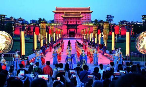 發(fā)展出題目,改革做文章。阿房宮遺址旁,歷史劇《赳赳大秦》拉開帷幕,秦王朝一統(tǒng)山河的長卷漸次展開;秦漢沙河古橋遺址旁,《絲路之聲》以音樂劇的形式展現(xiàn)漢代長安市井的繁華;驪山腳下,冰火《長恨歌》再現(xiàn)盛唐的風(fēng)華與浪漫;“折柳送別”的灞河之畔,歌舞劇《駝鈴傳奇》帶著觀眾體驗(yàn)唐代絲綢之路的冒險與驚奇;“曲江流飲”的芙蓉園里,研習(xí)東倉鼓樂50載的趙筱民以鼓、箏、琵琶等二十余種中國傳統(tǒng)樂器,奏響“中國古代交響樂”;厚重巍峨的永寧門下,游客們在《夢長安—大唐迎賓禮》中感受中華禮儀文化的魅力。