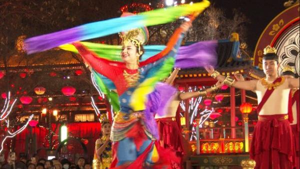 春節(jié)期間,走進(jìn)西安大唐不夜城、長安十二時(shí)辰街區(qū)、西安城墻景區(qū)、漢長安城未央宮遺址公園、大明宮遺址公園等景區(qū),不時(shí)可見《于闐樂舞》正在上演,該演出作為新疆和田縣“文旅+演藝”對外輸出的代表,讓西安的市民游客感受到絲路文化的獨(dú)特魅力。
