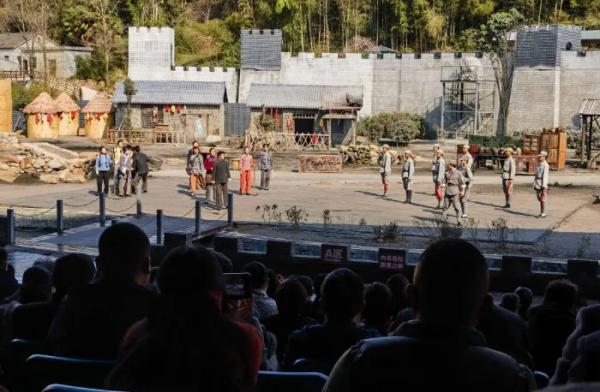 位于大別山腹地的安徽霍山縣落兒嶺鎮(zhèn),寂靜春風掠過草木葳蕤的崖壁,峽谷里卻突然騰起硝煙,一陣陣激烈的槍炮聲在山谷間回蕩。這是大型實景劇《大別山傳奇》的演出現(xiàn)場。年輕游客白欣語說,置身現(xiàn)場,數(shù)十名戰(zhàn)士從山間無畏地沖向敵人時,感覺自己是在歷史中震顫的參與者。