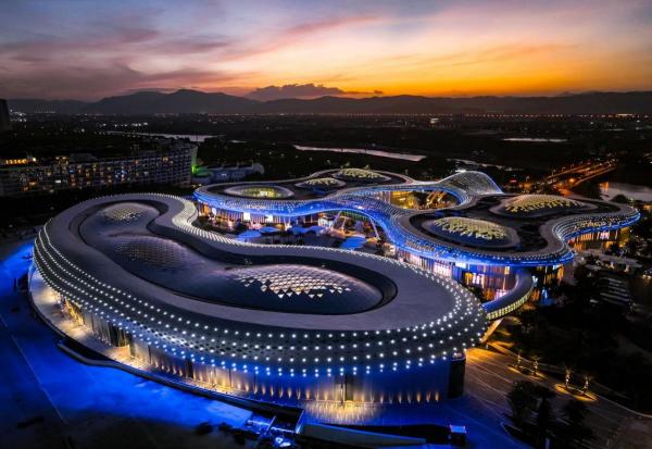 一期“海棠花”建筑群以花朵造型詮釋東方美學(xué),曾斬獲中國建筑質(zhì)量最高獎“魯班獎”;二期“貝殼”建筑群則以海洋珍寶為靈感,流線型設(shè)計(jì)與碧海藍(lán)天相映成趣。連接兩者的“云戒橋”是全球首座萬向鉸斜拉上人景觀橋,兼具功能性與藝術(shù)性,成為游客必打卡的地標(biāo)。