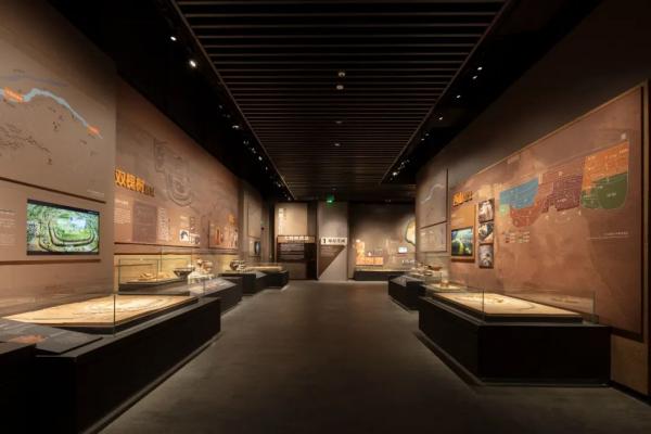 下沉式空間:建筑整體融入遺址公園環(huán)境,保留遺址完整性和連貫性。當(dāng)游客緩步下行進(jìn)入展廳,仿佛踏入考古發(fā)掘現(xiàn)場,開啟一場“仰望星空”的文明溯源之旅。