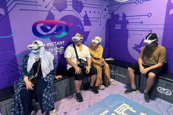 在上海影視樂(lè)園黃河路內(nèi),“元宇宙XR全感影院”瞬息魔方項(xiàng)目試運(yùn)營(yíng)首日即吸引2000余名游客爭(zhēng)相打卡。體驗(yàn)者們佩戴輕量化XR設(shè)備,在虛實(shí)交融的沉浸空間中穿越星際、探秘深海,通過(guò)多維度體感反饋與視覺(jué)奇觀開(kāi)啟“五感全開(kāi)”的次元冒險(xiǎn)。開(kāi)業(yè)至今,其新奇體驗(yàn)迅速圈粉——周末高峰時(shí)單日體驗(yàn)人數(shù)超300人,從開(kāi)館到閉館,熱門主題設(shè)備幾乎一直在運(yùn)行。候場(chǎng)區(qū)常坐滿等候的游客。已有多名外國(guó)游客前來(lái)體驗(yàn),用不太流利的中文連說(shuō)“太厲害了”。