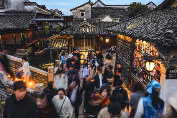 文化鑄魂讓水鄉(xiāng)底蘊點亮特色體驗。烏鎮(zhèn)深挖江南水鄉(xiāng)文化內(nèi)核,結(jié)合春節(jié)、端午、中秋等傳統(tǒng)節(jié)日,以文化為主線推出各項特色活動。2025年春節(jié)期間的“水上年市”,融合傳統(tǒng)燈會與非遺展演,生動還原江南傳統(tǒng)年俗?!盀蹑?zhèn)端午風俗志”則包含了龍舟船宴、安康福市、游園祈福等活動,端午期間烏鎮(zhèn)石門旅游度假區(qū)日均到訪游客31.5萬人次,列浙江省第三名。