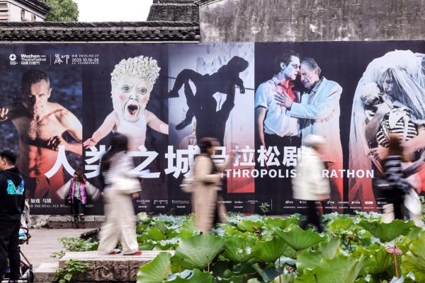 第十二屆烏鎮(zhèn)戲劇節(jié)不僅是中國戲劇的展示,更是一場國際性的文化藝術交流盛宴。來自世界各地的戲劇作品在此碰撞、交融,架起了一座中外文化交流的橋梁。作為本屆烏鎮(zhèn)戲劇節(jié)的開幕大戲,來自德國漢堡德意志劇院的《人類之城馬拉松劇》由導演卡琳·拜爾與劇作家羅蘭·施梅芬尼耗時五年打磨而成。包括演員、技術人員、鼓隊、歌隊在內(nèi)的150余名中德兩國劇組成員相聚在烏鎮(zhèn),合力為觀眾呈現(xiàn)了“馬拉松式”的精彩演出。